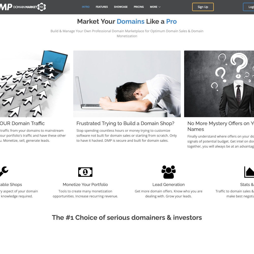 Domain Market Pro (DMP) is a Software-as-a-Service (Saas) solution for the creation for sales shops and landing pages for selling domain names.