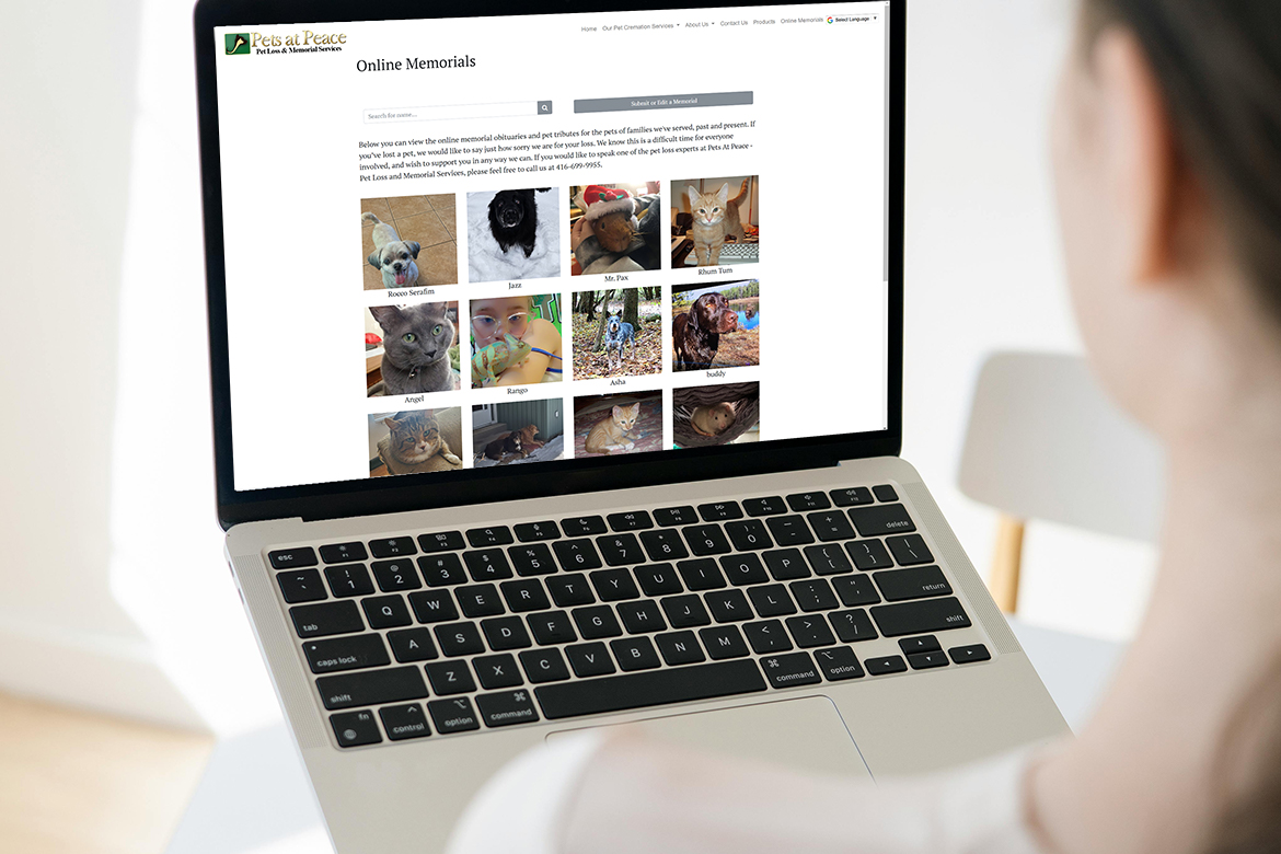 Website that compassionately assists with the loss of loved pets. Custom-built with highly dynamic features.
