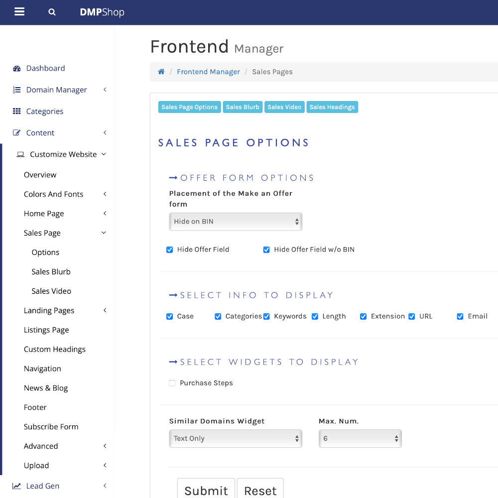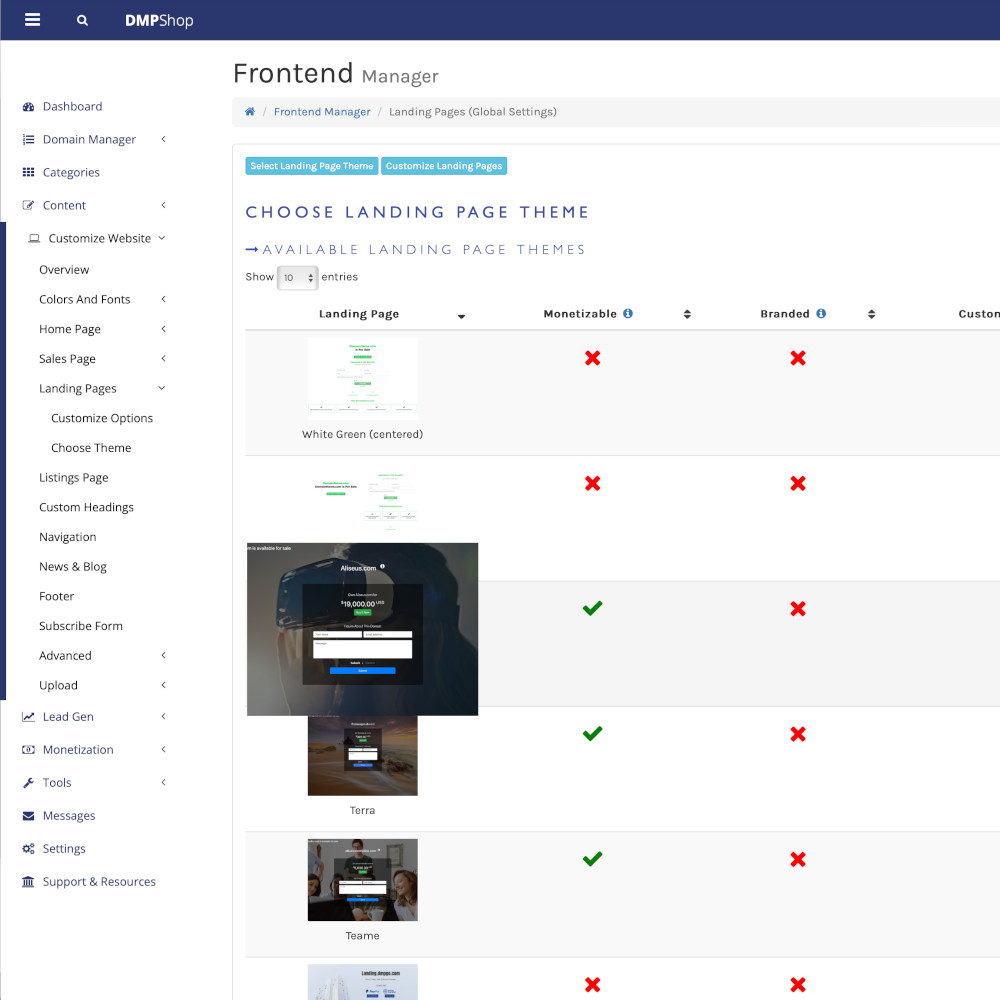 The backend for the very first and one-of-a-kind SaaS (Software-as-a-Service) for domain name investors. The interface (control panel) and functionality to allow clients to build their own branded marketplaces and landers.